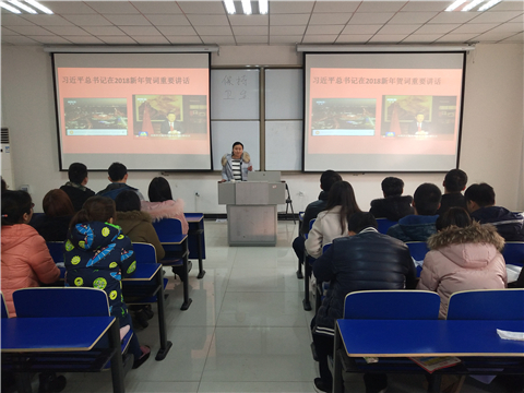 1月8日下午,精诚书院学生第一党支部在371教学基地第二大教室召开1月份政治理论学习会议,本次会议以“学习贯彻习近平总书记在2018年新年贺词重要讲话”为主题,由精诚书院学生第一党支部书记杨卫红主持,全体党员及预备党员出席了本次会议。