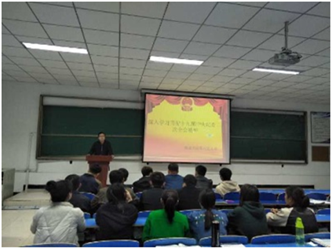 2018年4月13日下午,精诚书院第六党支部于问学楼302教室集中讨论学习贯彻十九届中央纪委二次全会精神,参与此次学习的有党支部书记姚志博同志及其全体党员和预备党员。