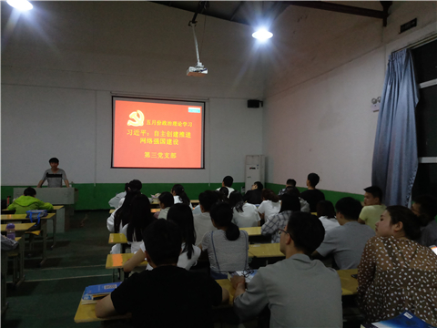 2018年5月19日,精诚书院第三党支部于焦煤基地大教室开展了自主创建推进网络强国建设政治理论学习。参与此次学习的有第三党支部党支部书记李帅同志及其全体党员。