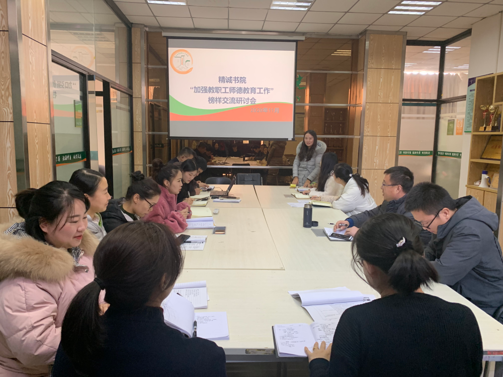 为增强书院教队团队的凝聚力,加深其对书院的归属感,11月4日,精书院党总支特于精诚书院办公室举办了“精诚小家 榜样力量”主题交流研讨会。精诚书院全体教教职工参与了此次研讨会。