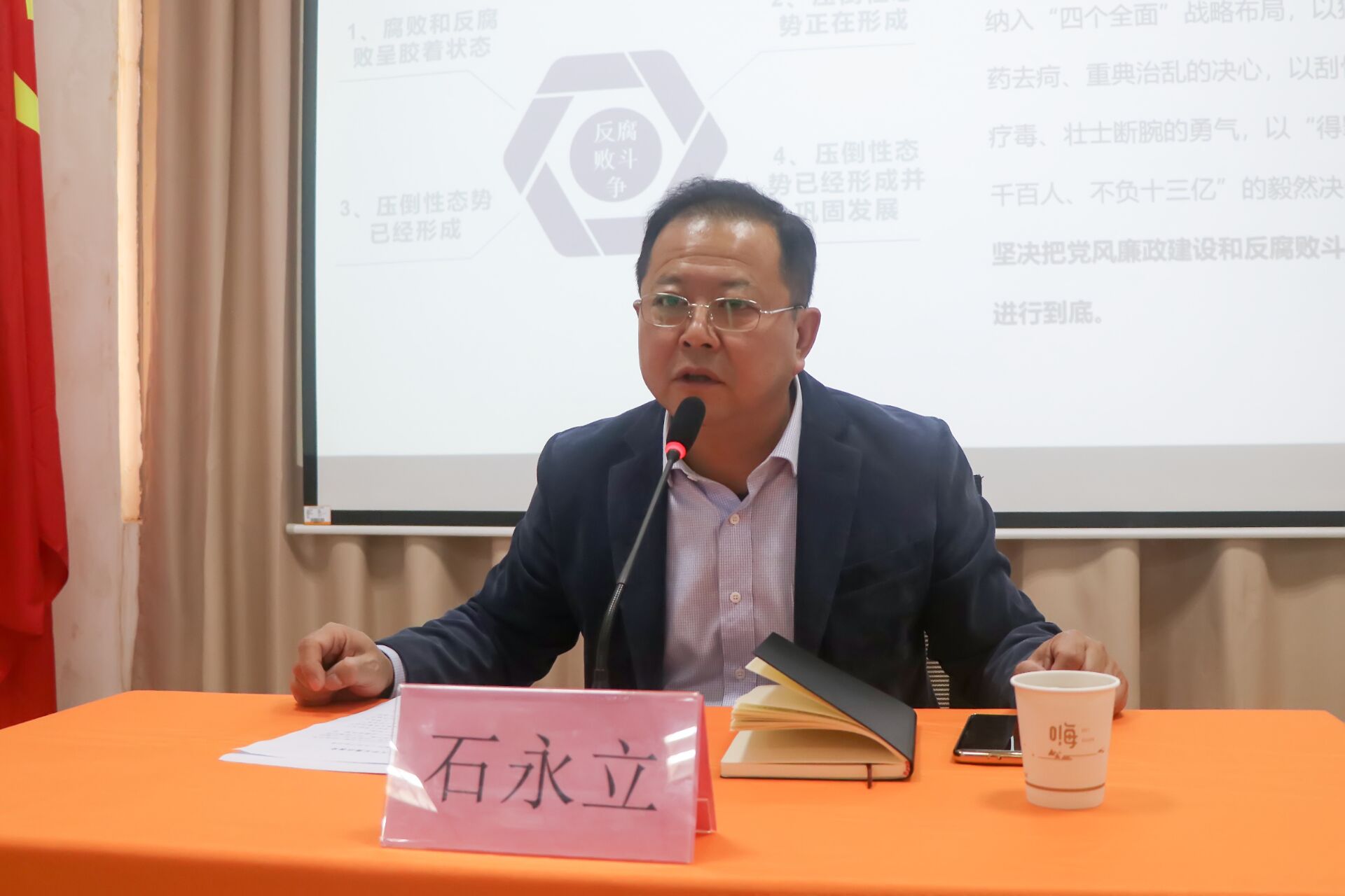 反腐败是一场输不起的战争,石永立首先根据当前我国反腐败斗争的严峻形势和大学生加强自身廉洁修养的重要性,介绍了十八大以来党的廉政建设和反腐败斗争进程。他说:“大学生是祖国的未来与栋梁,同学们的思想和行为倾向决定着我国党风廉政建设的未来,大学生廉洁教育,必要而必须。”石永立还在授课中为师生敲响警钟,引导新时代大学生树立积极正向价值观,根植“敬廉崇洁”理念,让“清廉”在校园落地生根,勉励广大青年学生自觉地把个人志向和国家民族命运紧密联系起来,实现自身廉洁修养与中华民族伟大复兴的有机结合。