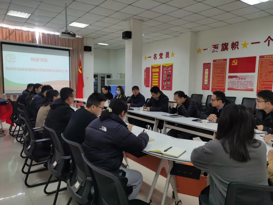 11月11日上午我校副院长薛宏带领图书馆、教育技术中心和网络管理中心负责人一行7人,深入精诚书院开展“提问题,走实干”专题调研座谈会。精诚书院党总支书记张新、副书记万建苗、辅导员和学生代表参加此次座谈会。