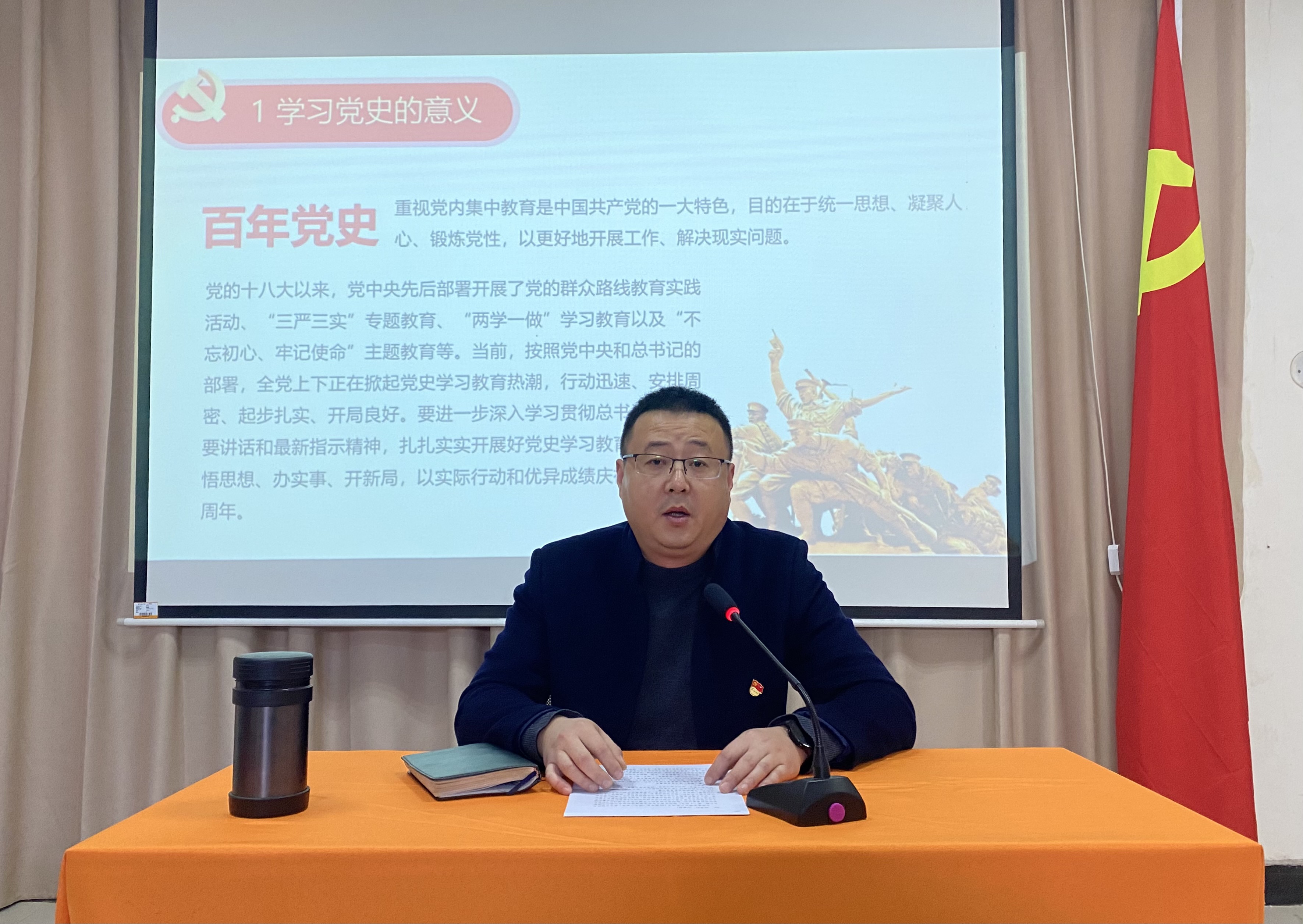 张新从“学习党史的意义”“党史应该如何学”“开展党史学习教育”三个方面开始讲述党史学习教育。张新指出,当前,全党上下正在深入开展党史学习教育,要以党史学习教育为契机,深刻学习领会习近平总书记在党史学习教育动员大会上的讲话、建党100周年庆祝大会上的讲话等重要讲话精神,深入学习回顾我们党走过的百年光辉历程,学透、掌握和用以指导工作实践,进一步增强“四个意识”、坚定“四个自信”、做到“两个维护”,凝心聚力,乘势而上,锐意进取,向着第二个百年奋斗目标前进。教育引导学生深入学习领会党史学习教育的精神实质,把党史学习教育与提升思想,见诸行动相统一,真正做到内化于心、外化于行。
