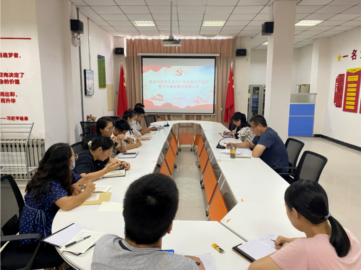 9月23日,精诚书院党总支召开2021年度全面从严治党暨党风廉政建设专题部署会,精诚书院书院全体教职工党员参与本次会议,会议由党总支书记张新主持。