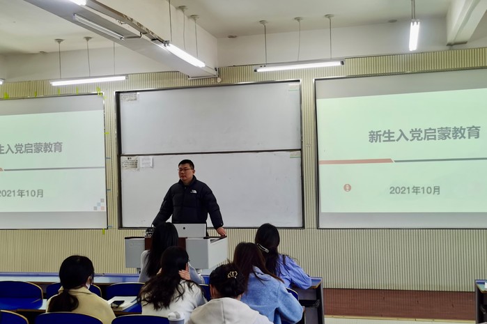 “努力成为一名合格的大学生党员不仅要在组织上入党,而且要在思想上入党,最重要的就是要用党的创新理论特别是习近平新时代中国特色社会主义思想武装头脑、指导实践、推动工作,真正把学习贯彻党的创新理论作为思想武装的‘重中之重’。”10月初,书院支部书记秦磊、张欢欢、宋晶晶分别在新老校区结合初心信仰、入党动机、入党条件等方面向2021级全体学生做了入党启蒙和党性教育,讲授第一节入党启蒙课。鼓励新生们将党员标准融入学习、工作和生活,认真对照标准,逐条抓好达标,以实际行动争取早日加入党组织。