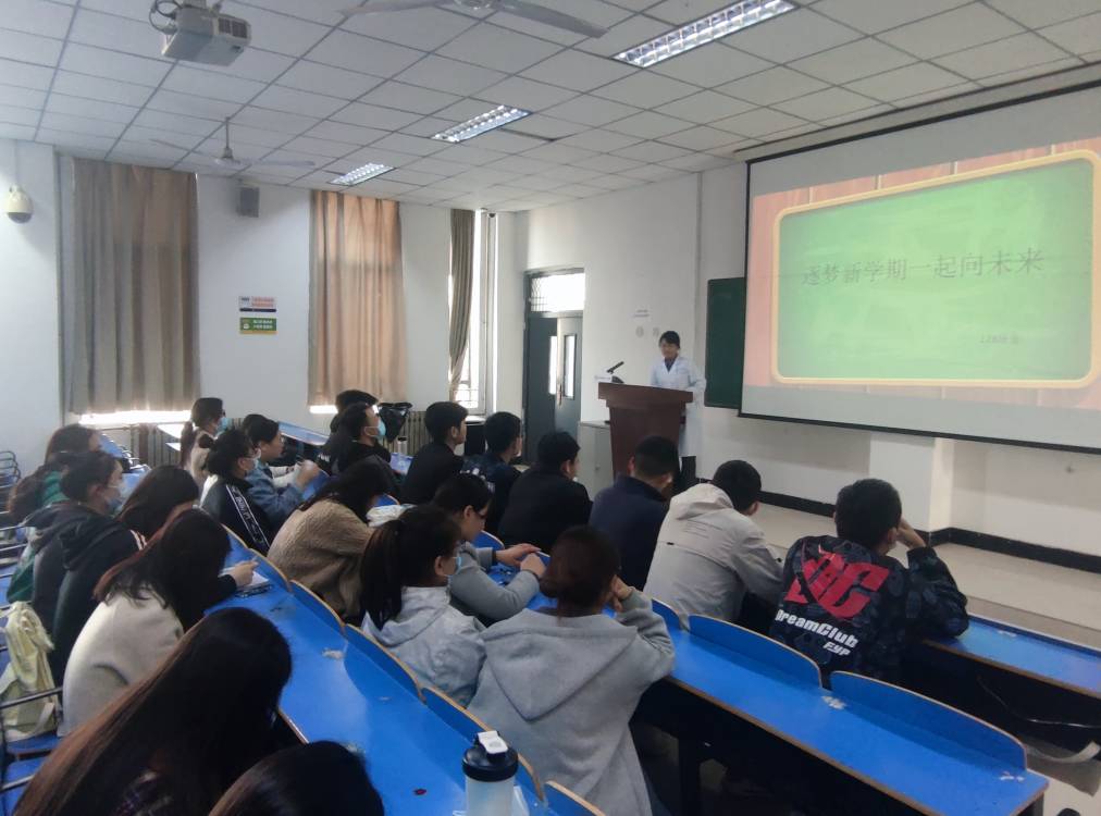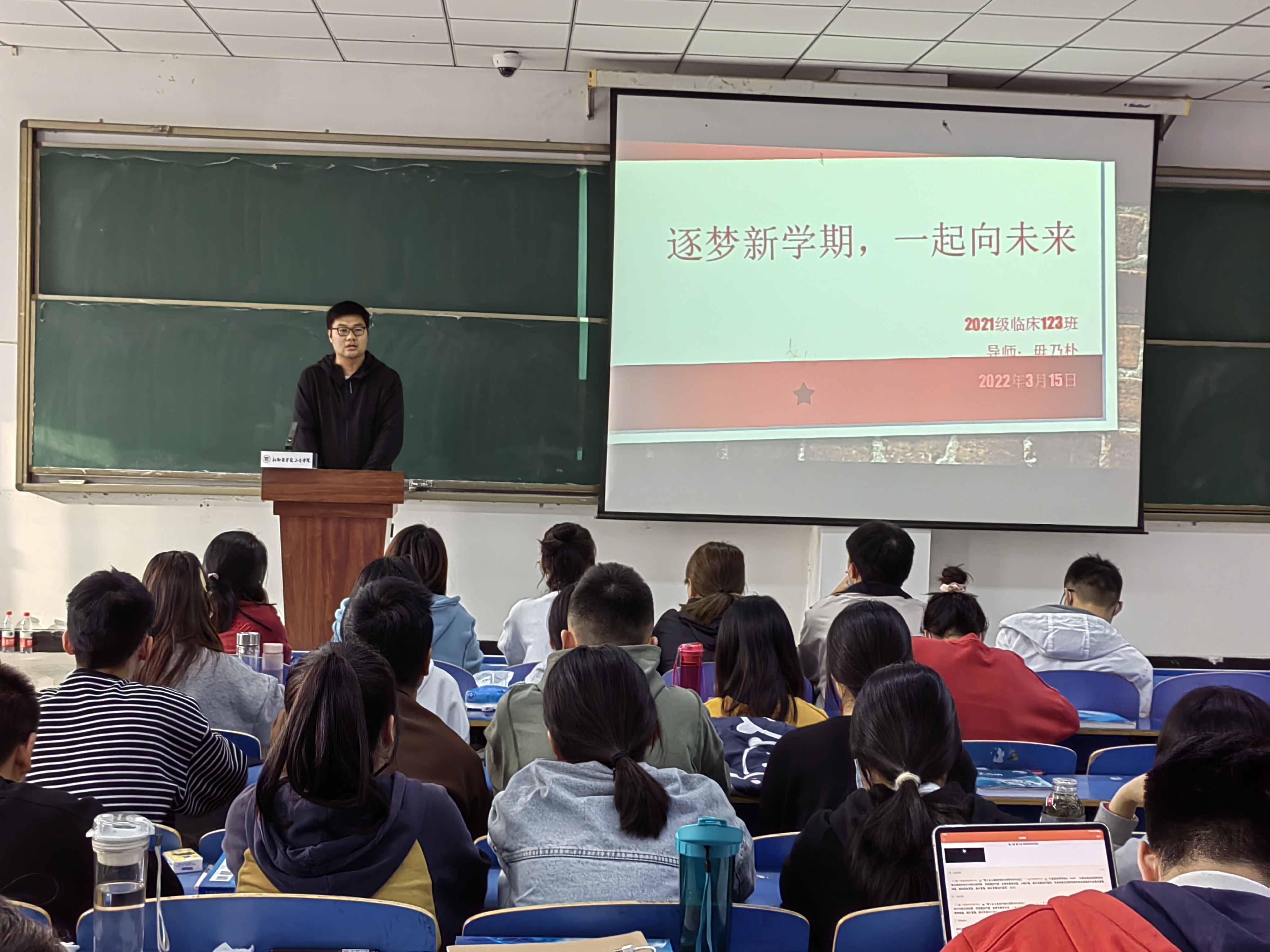 临床123班于2022年3月15日下午五点钟在303教室跟大朴老师进行了开学以来的第一次导师见面会。随着这次“逐梦新学期,一起向未来”的主题,班会拉开了序幕。新学期第一次见面,大朴老师与同学们既熟悉又陌生,经过短暂的熟络,大家很快便进入了状态,竖着小脑袋认真的听大朴老师对我们新学期新一轮的学习与生活上的指导。大朴老师亲切的询问大家新学期生活是否适应,是否在学习或者生活上遇到困难,以及对自己这学期将要面临的学习生活是否有疑惑,所有问题大朴老师都细心的一一为同学们解答,同时,大朴老师还以学长成功考研上岸的事迹鞭策我们努力学习,他以身作则,建立学习打卡群带领着大家一起“内卷”,充实自己,一起向未来进发!