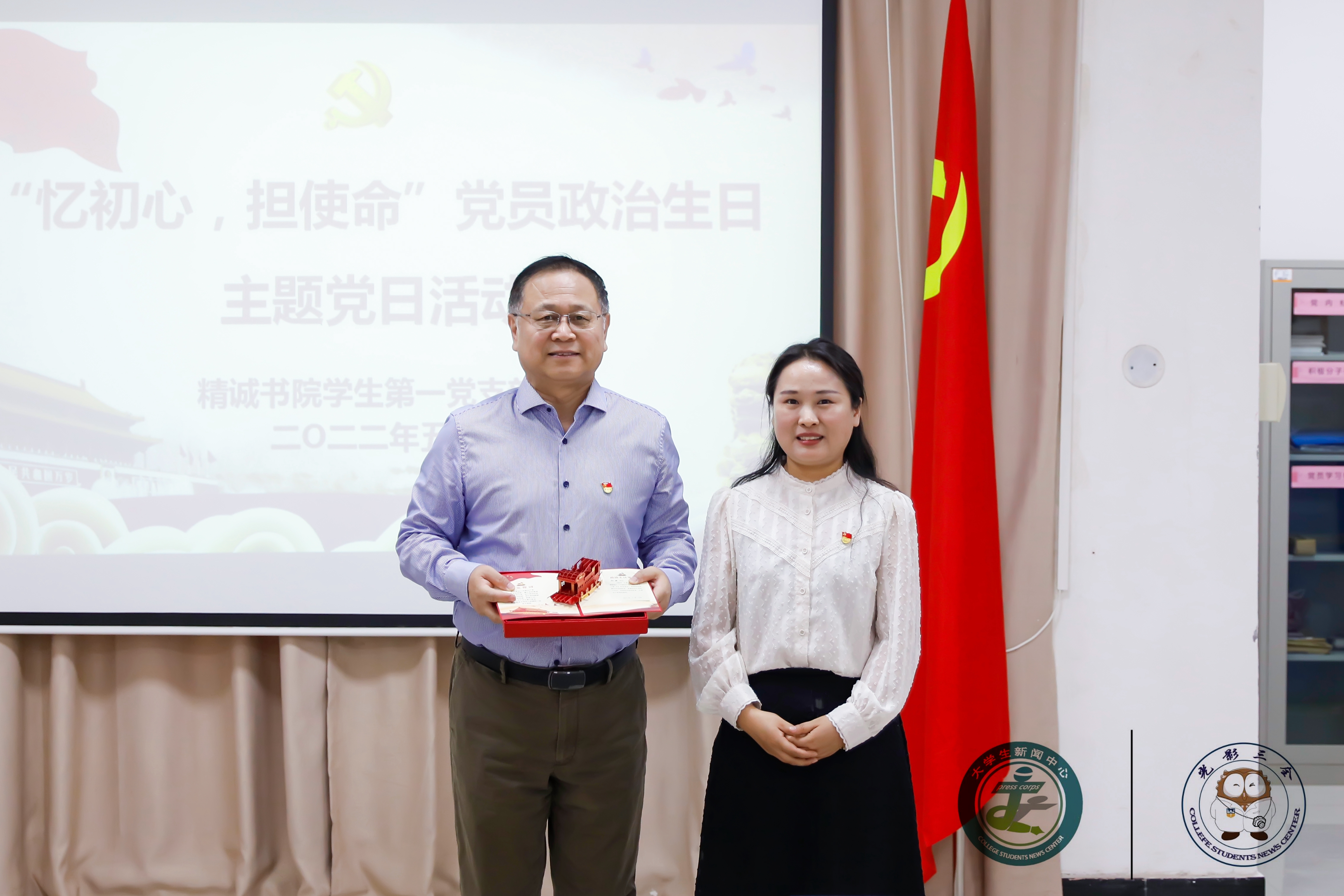 为使党员重新回忆党组织的培养历程,强化党员宗旨意识,提醒党员始终牢记入党时的铮铮誓言,5月17日,精诚书院学生第一党支部组织全体党员开展以“忆初心,担使命”为主题的党员政治生日主题党日活动。我校党委书记杨捷以普通党员身份出席本次活动。