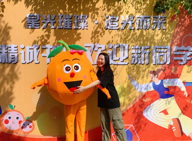 耶.我们的新同学在和小橙子拥抱,看她脸上洋溢的笑脸,喜悦中透露着羞涩,屏幕前的你是否也想与精小橙来一个大大的拥抱呢?