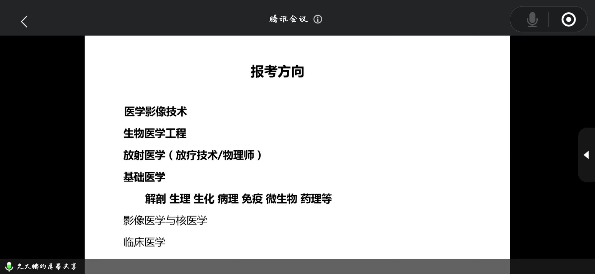会上,史大鹏结合影像专业相关知识及多年丰富临床教学经验,从考研重要时间节点、报名流程、报名实例及学习计划四个方面为学生规划了清晰的备考建议。同时强调,专业课复习中记笔记和划重点的重要性,指出要多看、多练,一定要将专业课本“看懂”“吃透”。