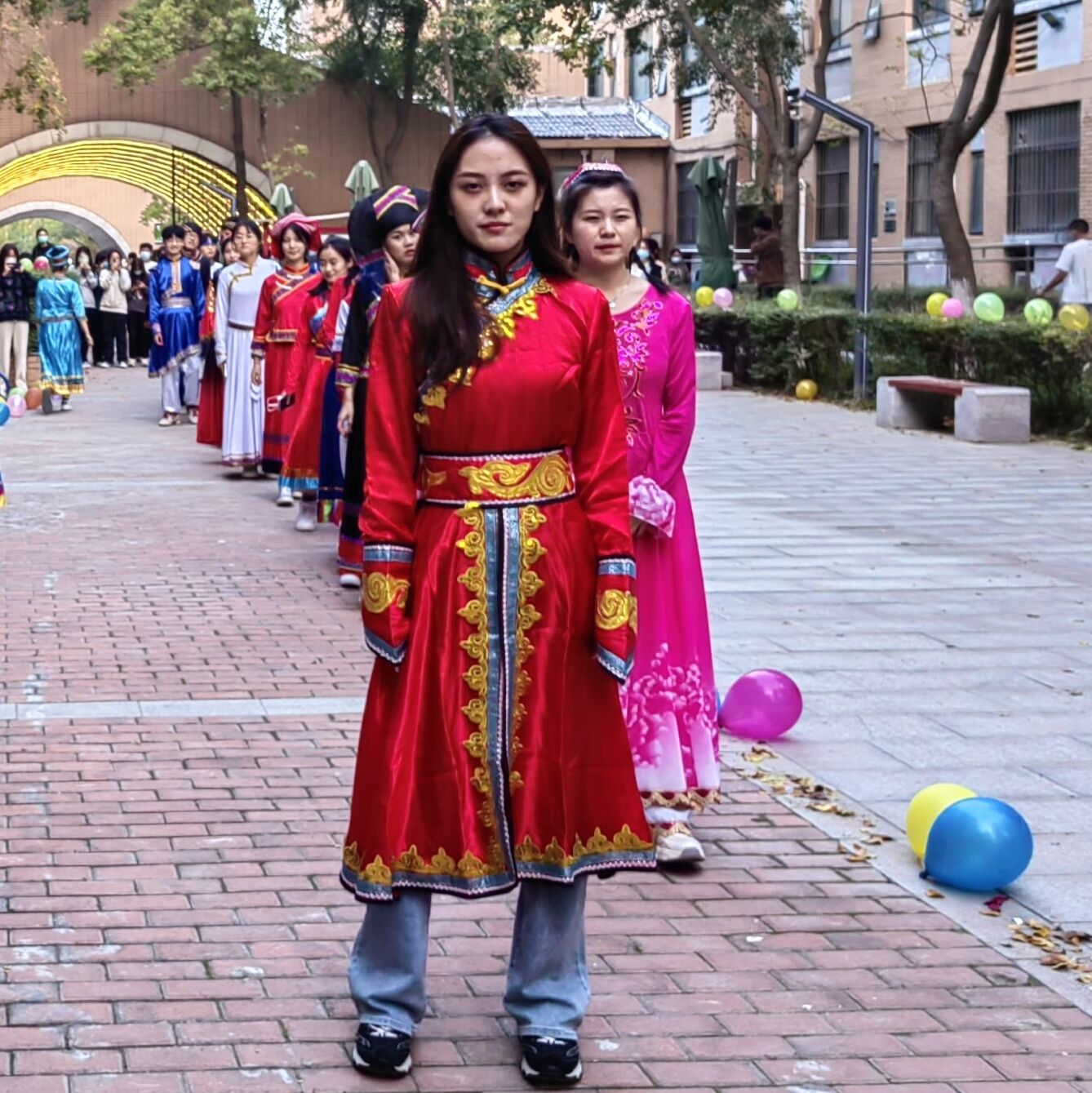 “哇噻!你看那个穿瑶族服饰的女生好好看!”“要不是在校园看到,我以为他们都是专业选手呢!”“哈哈哈哈你看那两个穿蒙古族服饰的男孩子!真的很像两个要去摔跤的蒙古大汉!”民族服饰的集结,朝气蓬勃的走秀,使得时装秀现场热闹非凡。一个个帅气美丽的姿势,一件件绣工精良的民族服装,无不彰显着中国传统文化元素与青春气息的完美融合。