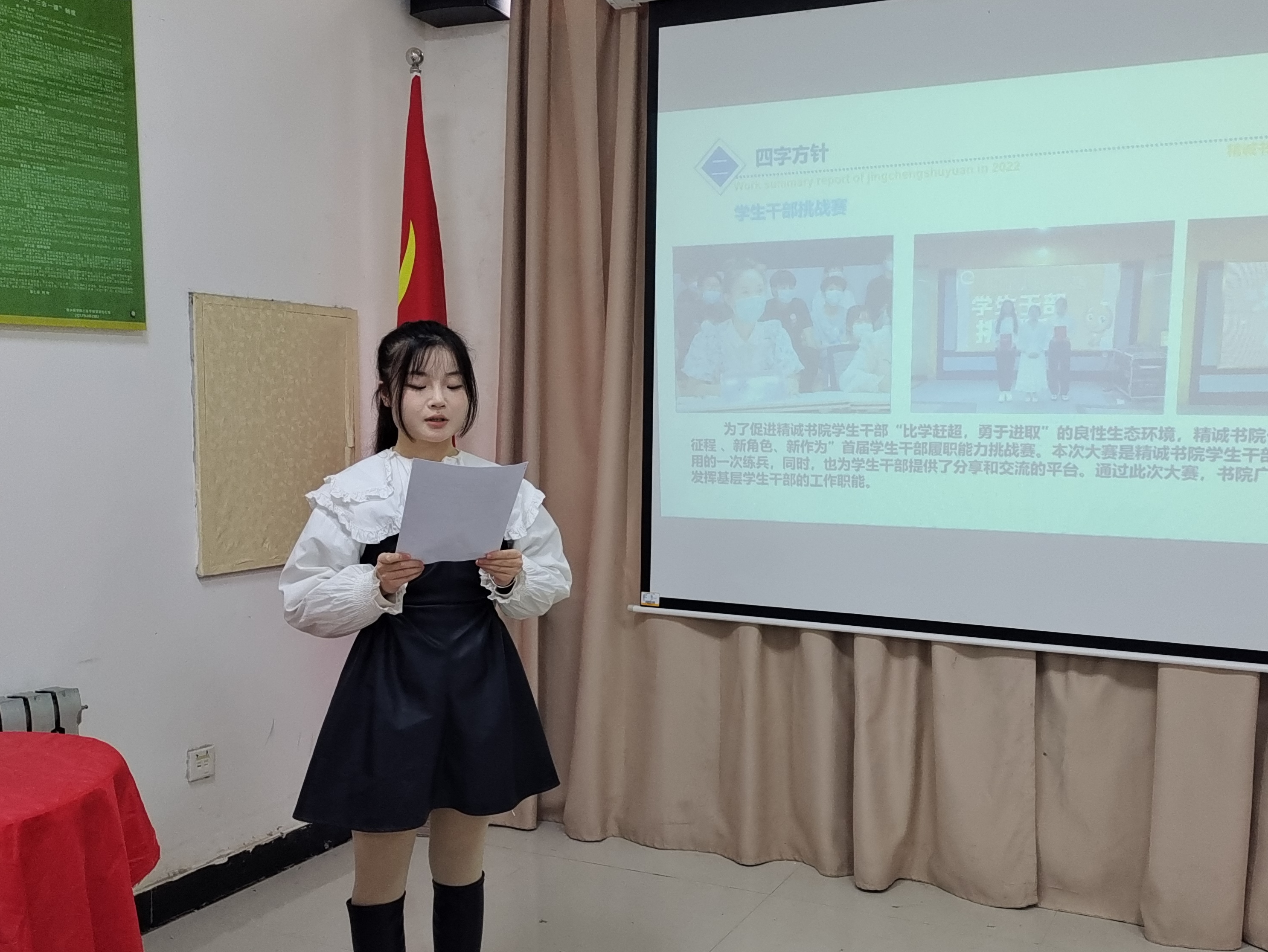 为扎实推进精诚书院党总支对学生干部领导的具体化,规范化,增强书院学生会的凝聚力。11月9日,精诚书院在党员活动室召开了学生会工作汇报会议。本次会议由精诚书院党总支书记张新主持,行政专员朱家乐、学生会主席团以及各部门主任参加本次会议。
