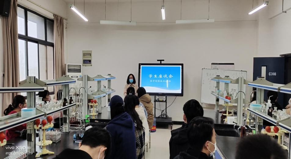 2022年11月18日徐老师与2022级专升本医学影像技术147-148班在基础实验楼C308开展学生座谈会。师生就专业学习及考试进行了交流,建议同学们平时做好复习,用思维导图来总结每次学过的知识,做好积累以及参考专业课教师课件进行复习,尽自己的最大努力去提高成绩,为将来工作或考研做准备。