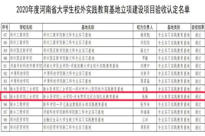 近日,河南省教育厅官网发布了关于河南省本科高校大学生校外实践教育基地名单的公示通知,公布了首批河南省大学生校外实践教育基地建设项目名单,其中我校精诚书院“新乡医学院三全学院—刘庄展览馆史来贺同志纪念馆校外实践教育基地”建设项目顺利通过。