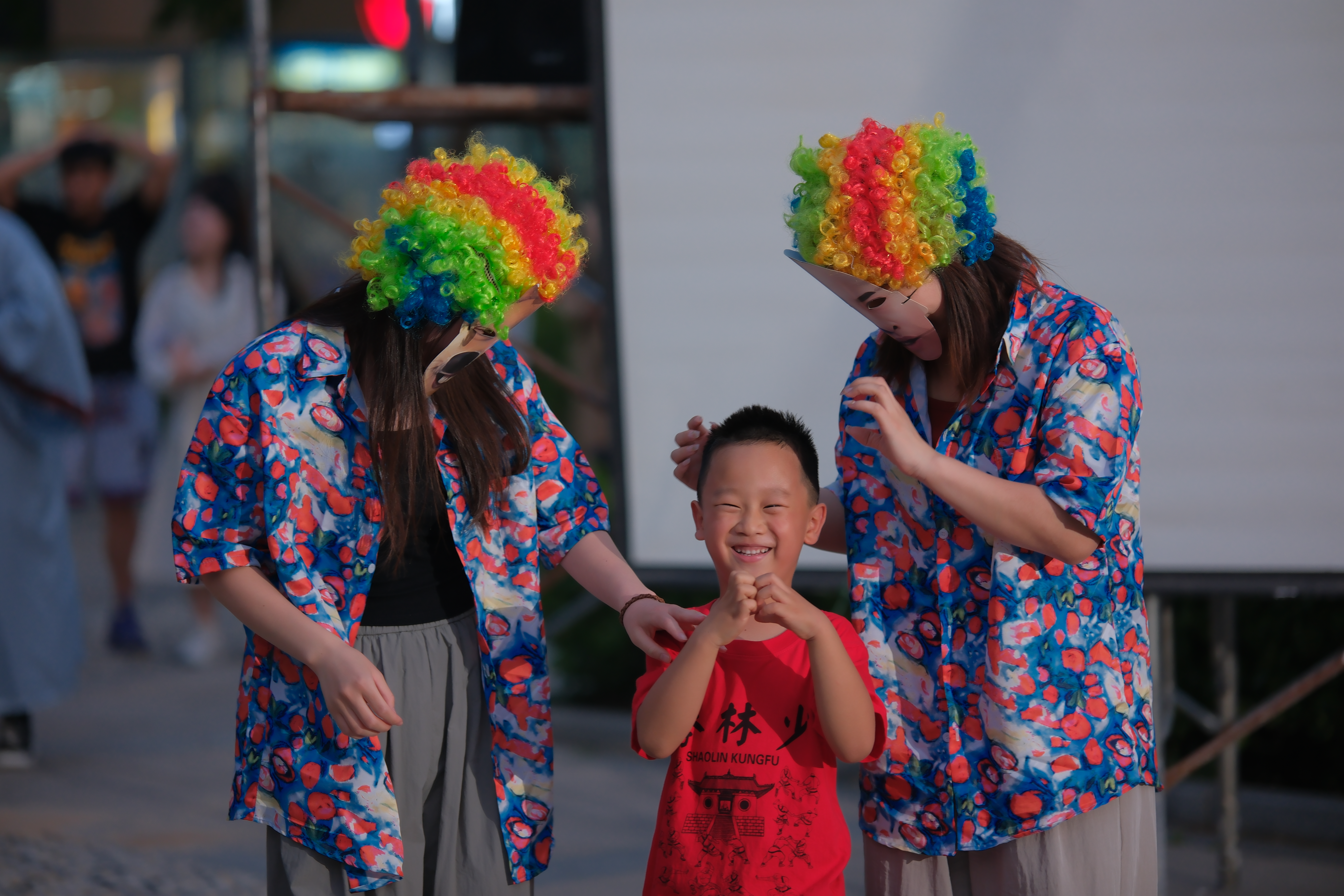 随着动感十足的音乐响起,师生代表瞬间化身“超级麻豆”,演绎创意走秀《笑料时尚秀,步态也疯狂》,他们身着自己DIY的服装和道具,一时间,民族、时尚、多巴胺、古风、二次元、COS、文艺......各美其美、美美与共,彰显了青春和活力,演绎着夏日傍晚最美好的浪漫。