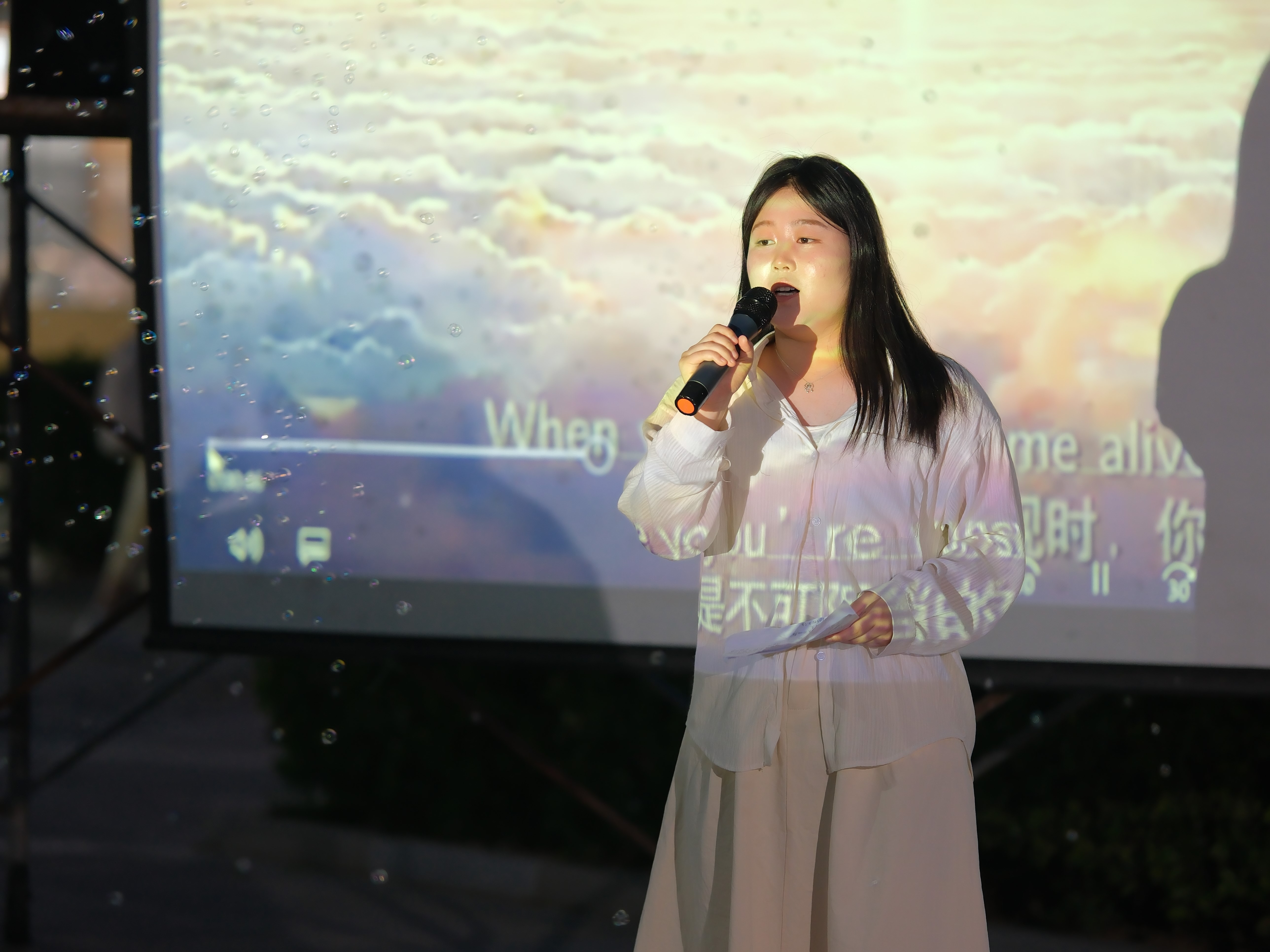 在“嗨派对”环节最后,师生集体合唱《童年》《同桌的你》《全是爱》将现场氛围推向高潮。在这段熟悉欢快的旋律中,表达着对大学时光的留恋与不舍,同时,也给予了他们勇敢前行,乘风远航的信念和勇气。