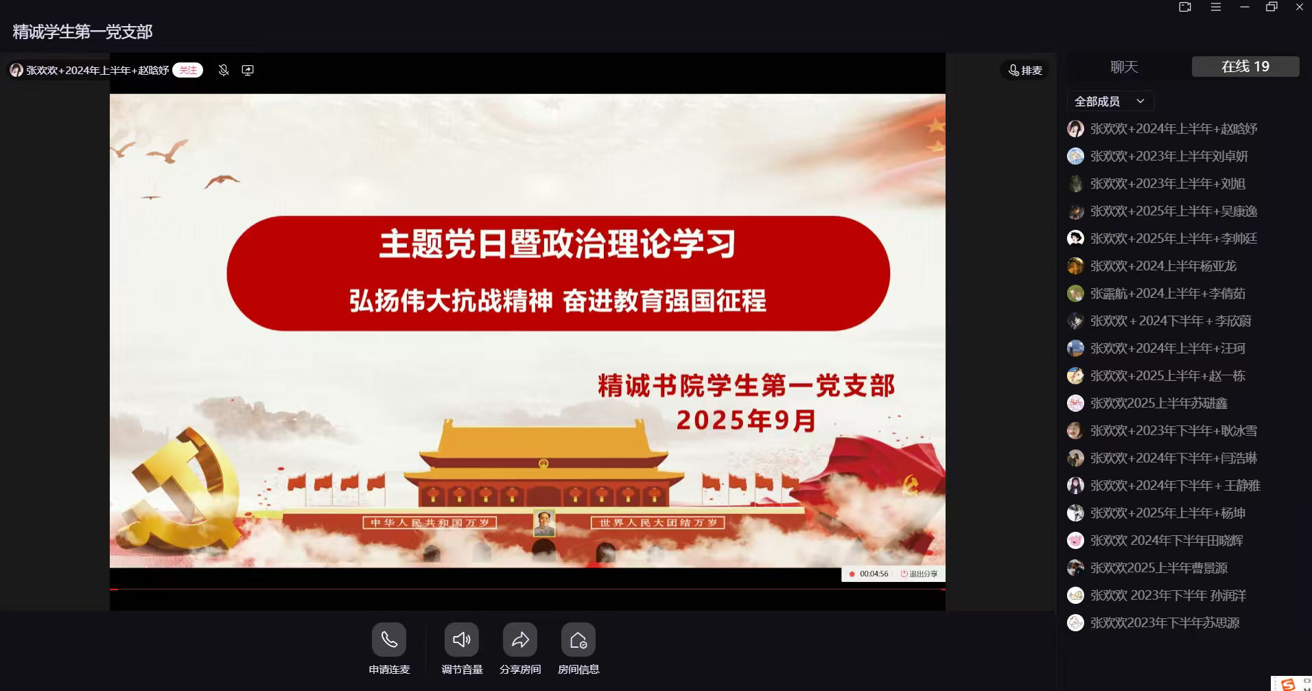 9月24日,精诚书院学生第一党支部精心策划并成功举办了“弘扬伟大抗战精神,奋进教育强国征程”主题党日活动。本次活动创新采用“理论学习+实践教育”相结合的形式,通过搭建QQ云课堂平台实现全体实习生党员线上同步学习,同时开展了“历史影像修复”、“教育强国宣言接龙”等富有特色的实践活动。