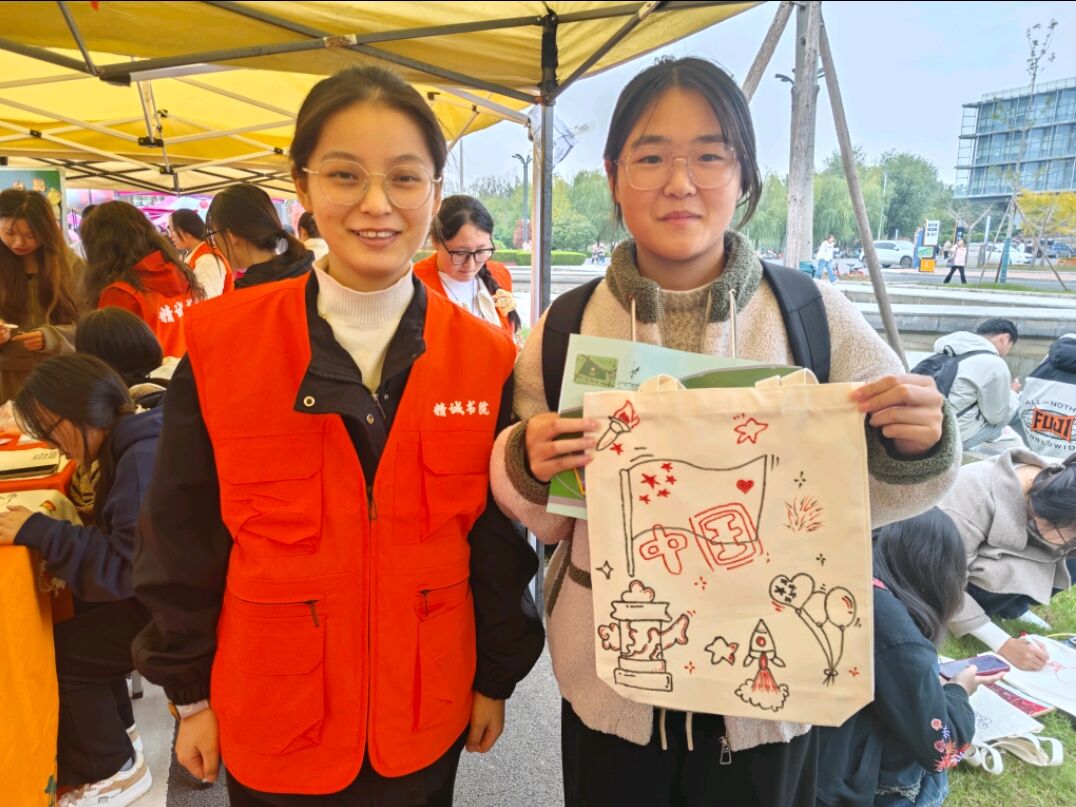 “我与祖国共奋进” 帆布包创作活动率先拉开帷幕。本次活动吸引 120 余名学子参与,共组成42支创作队伍。现场学子独自构思或组队协作,领取空白帆布包与画笔后,围绕“祖国成就”主题挥毫创作。港珠澳大桥的壮阔轮廓、“天宫”空间站的浩瀚剪影、杂交水稻的金黄稻浪等元素跃然包上,每幅作品均包含至少 2 个国家元素,生动诠释对祖国发展的自豪。