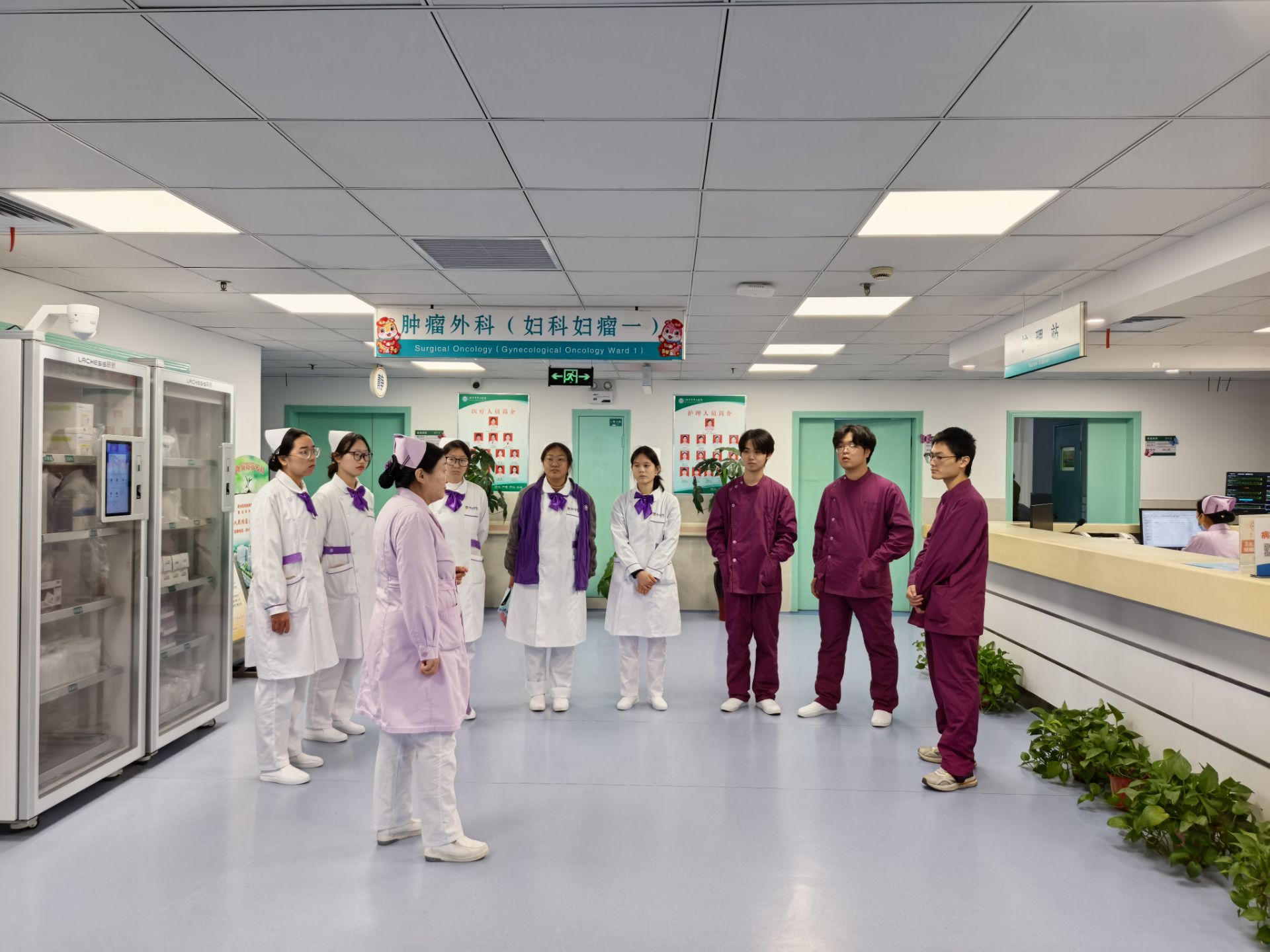 下午,精诚学子们也来到了新乡中心医院,开启了临床实战场景的观摩学习。在医护人员的带领下,大家深入内科、外科病房,近距离观摩护理查房、医患沟通、病情记录等实战环节。查房过程中,责任护士详细汇报患者病情、治疗方案及护理措施,医生与护士默契配合,针对患者情况共同调整诊疗计划,严谨的工作态度、规范的诊疗流程让学子们深受触动。“护理工作不是简单的打针换药,而是要全面掌握患者病情,精准落实护理措施,还要具备良好的沟通能力和应急处理能力。”随行的护士老师结合现场场景,为学子们讲解护理工作的专业性与复杂性。
