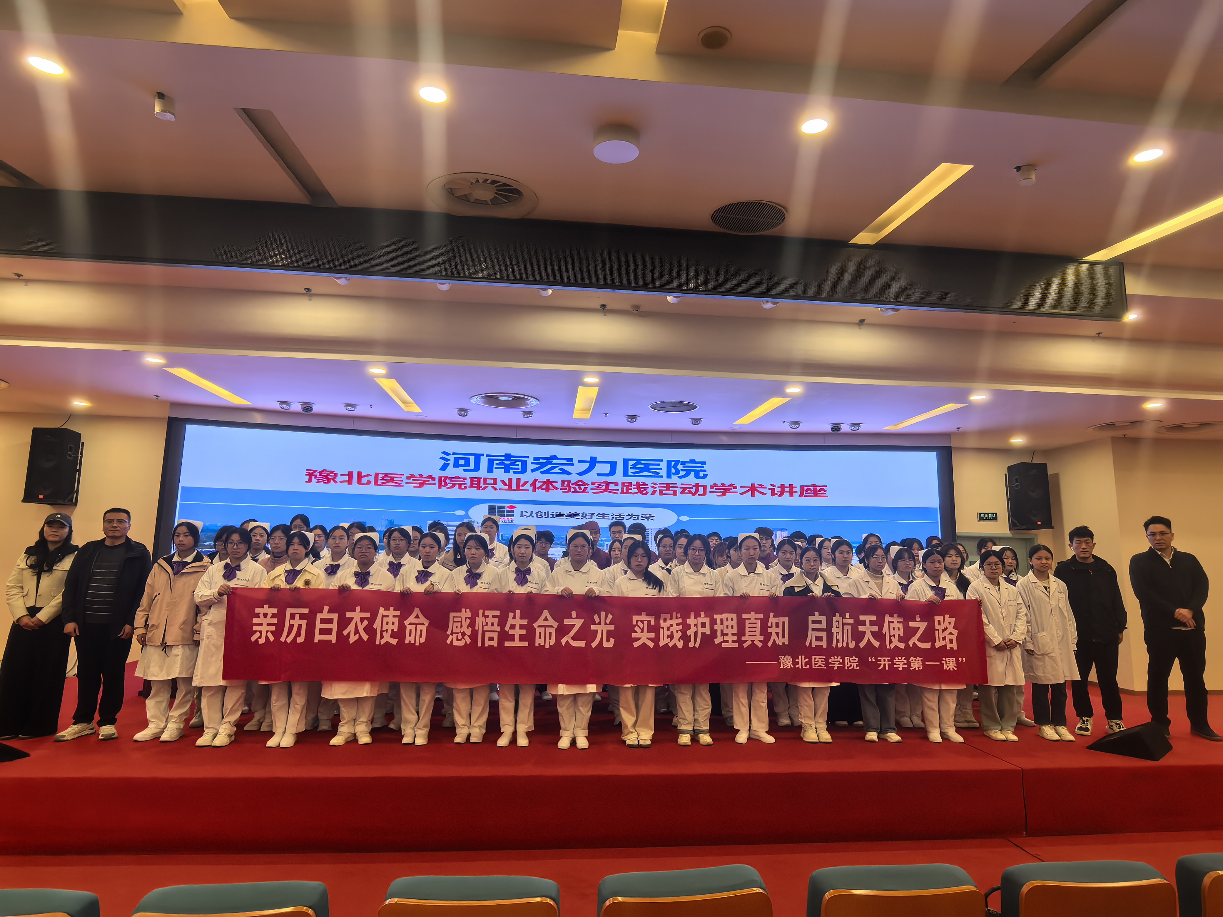 此次新生职业体验活动,是我校实践教学的创新尝试。河南宏力医院与新乡中心医院凭借优质的医疗资源与专业的教学团队,为新生搭建了职业体验的优质平台。通过沉浸式参观与深度交流,学子们不仅切身感受了两家医院规范的医疗氛围与高水平的护理服务,更对护理职业的价值意义有了更深刻的认知,职业信念得到进一步筑牢。未来,这群青年学子必将以更饱满的热情投入专业学习,以扎实的技能、温暖的情怀,在守护群众健康的道路上稳步前行,成长为合格的护理人才,为医疗健康事业发展注入青春力量。