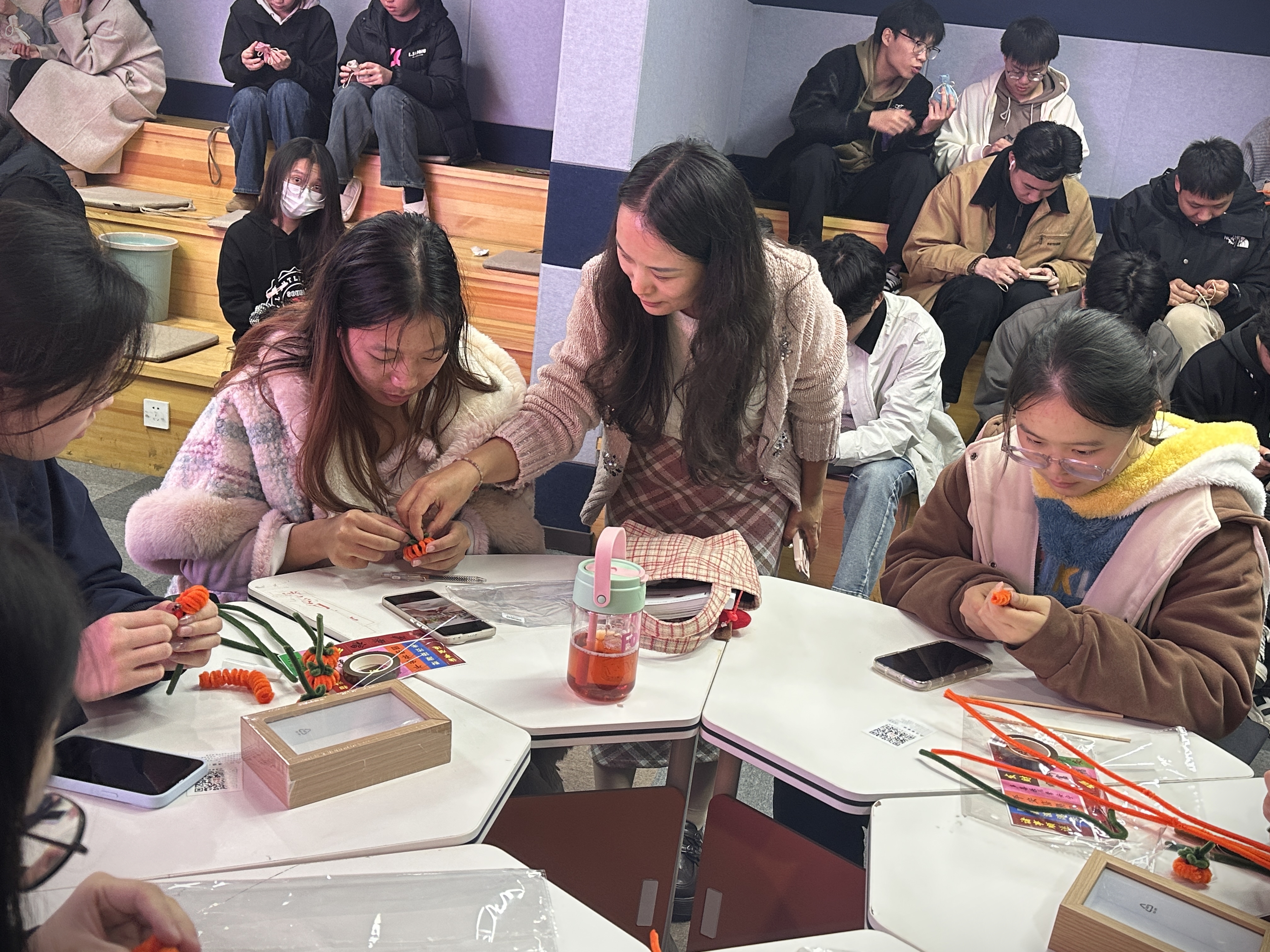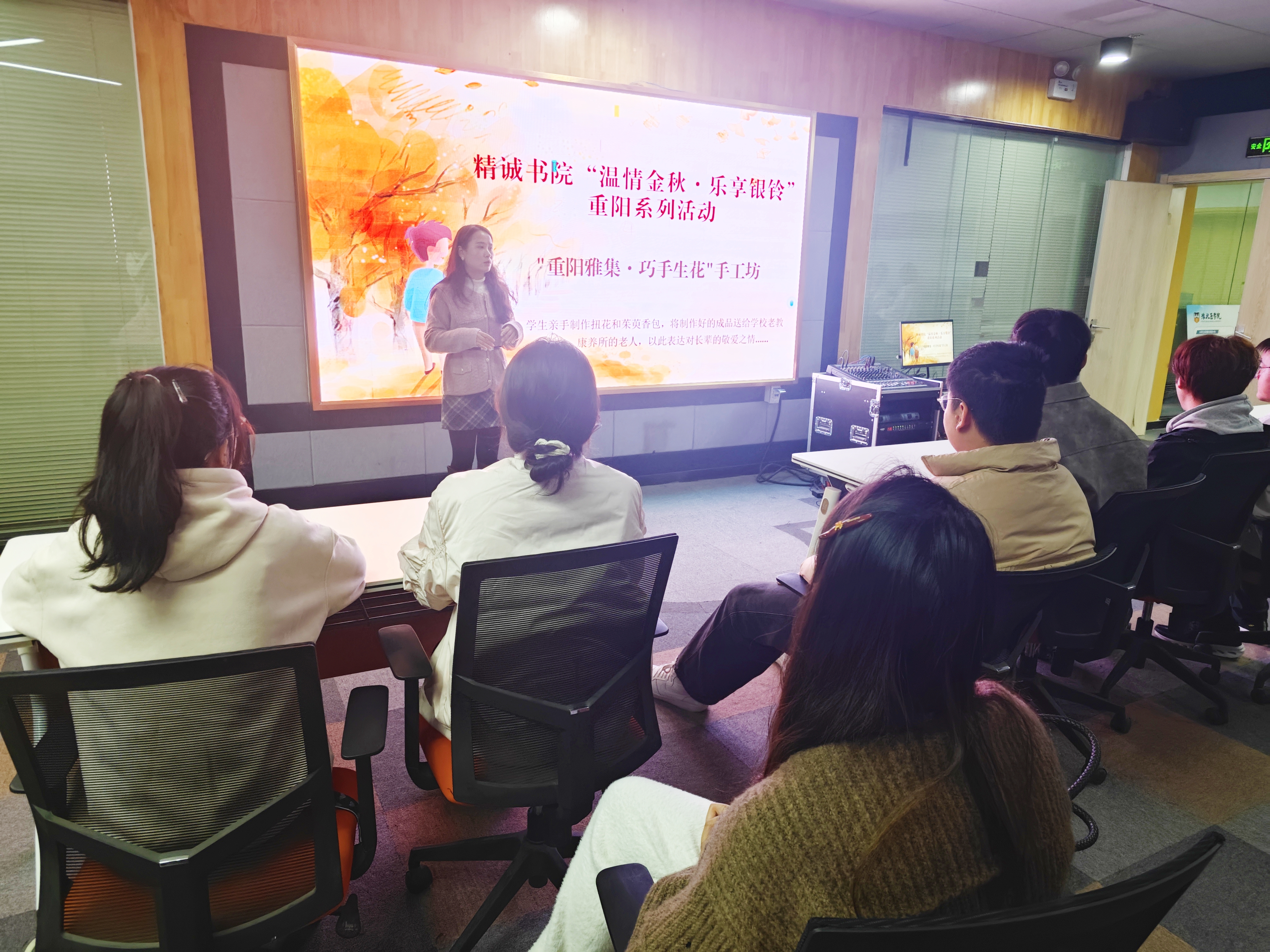 10月27日,精诚书院党委在众创空间继续开展“重阳雅集,巧手生花”手工工作坊活动。