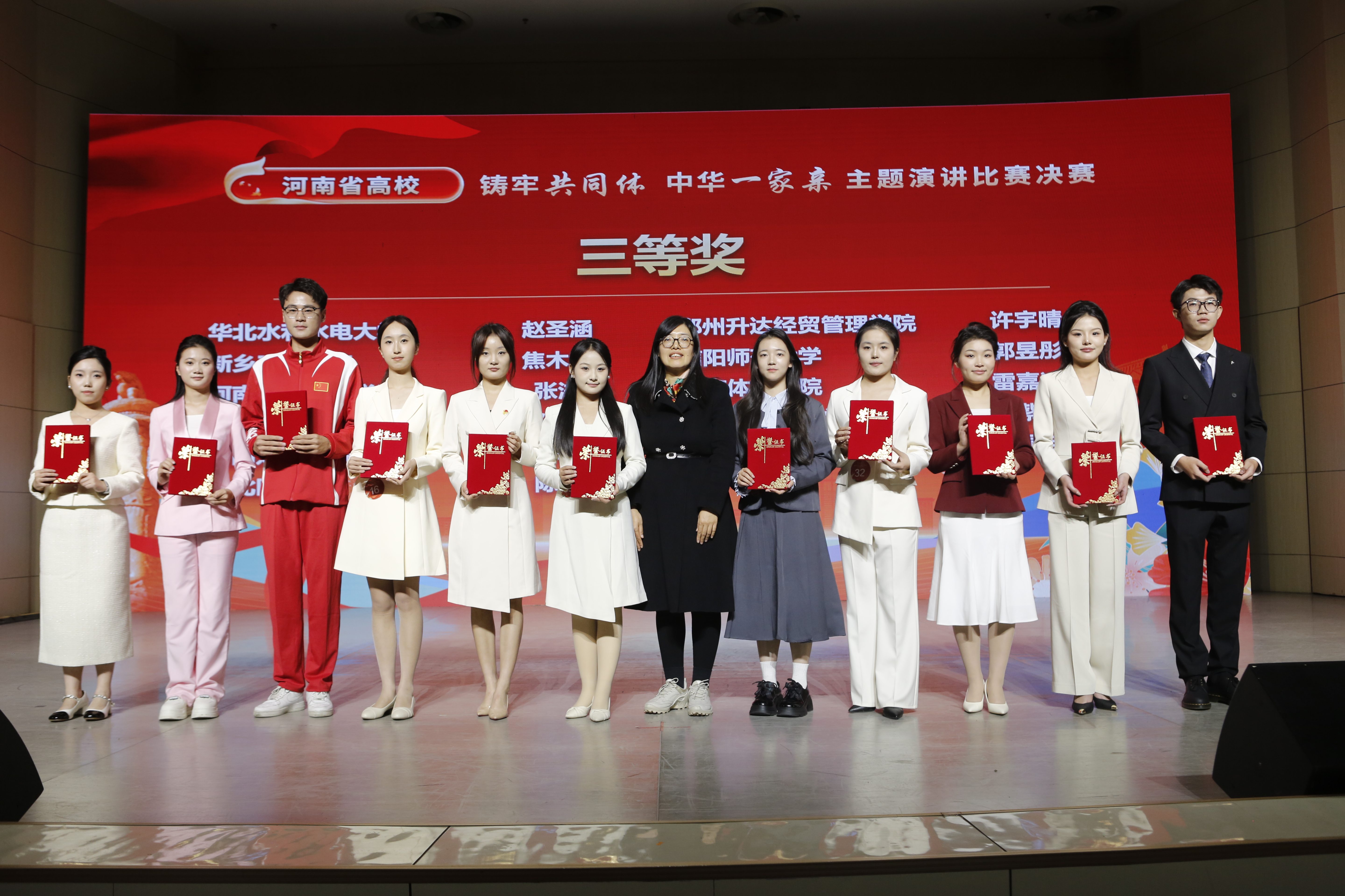 11月14日,由中共河南省委教育工委、河南省教育厅、河南省民族宗教委主办的河南省高校大学生“铸牢共同体 中华一家亲”主题演讲比赛决赛顺利举行,我校精诚书院学生陈卓荣获河南省三等奖。