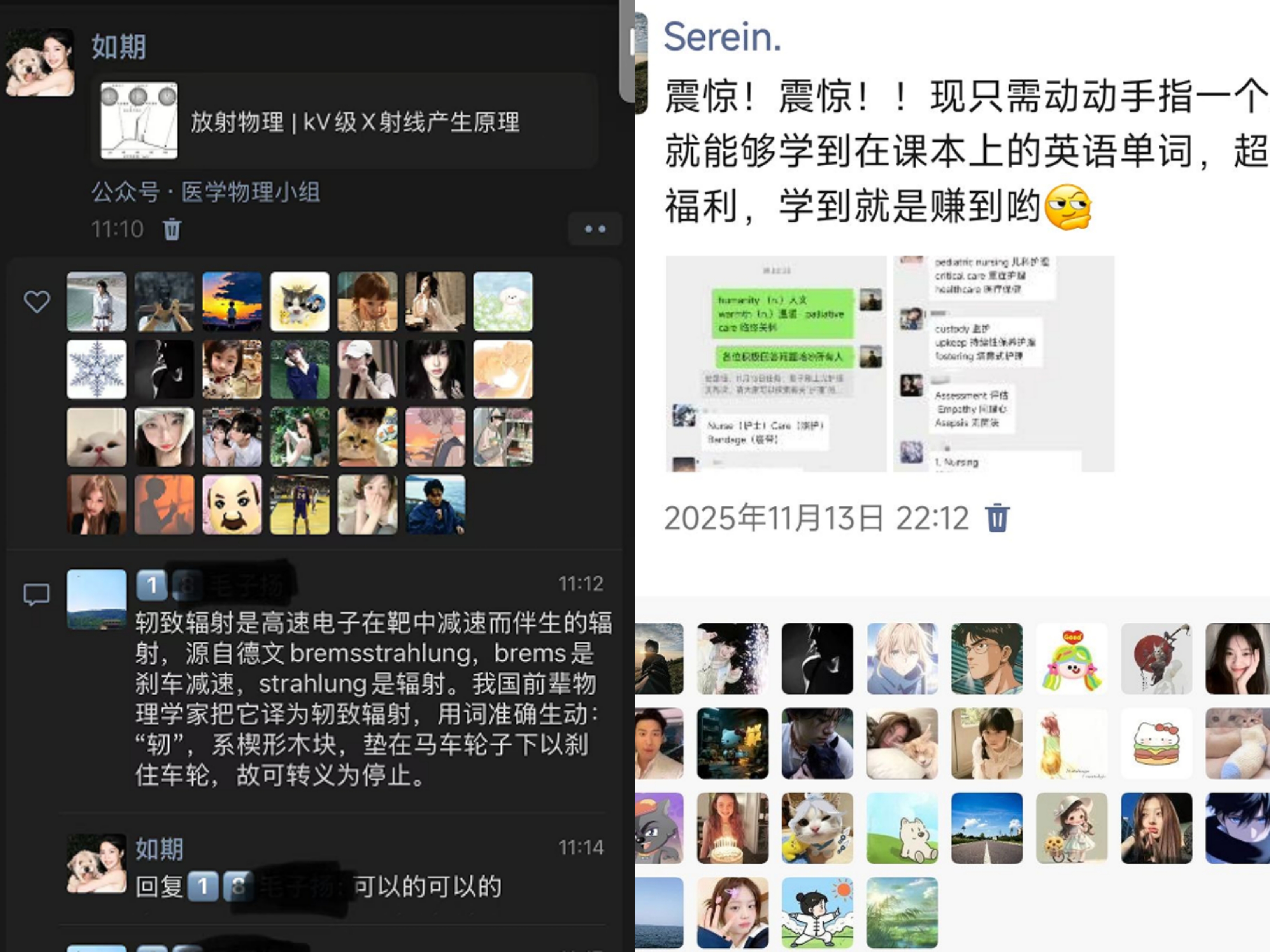 “知识风暴,一触即发”构建线上线下融合的学习共同体。以小班为单位,学生每日20点在班级群分享专业知识点、英语词汇、时政热点等“知识微分享”,学习委员按学号顺序组织讨论,形成“每日一学、全员参与”的学习习惯。在此基础上,书院评选出10个“知识风暴”班级、21名“知识风暴”达人,其中“达人”通过朋友圈分享知识点,单条最高获赞超109次,实现“学习—分享—传播”的良性循环。