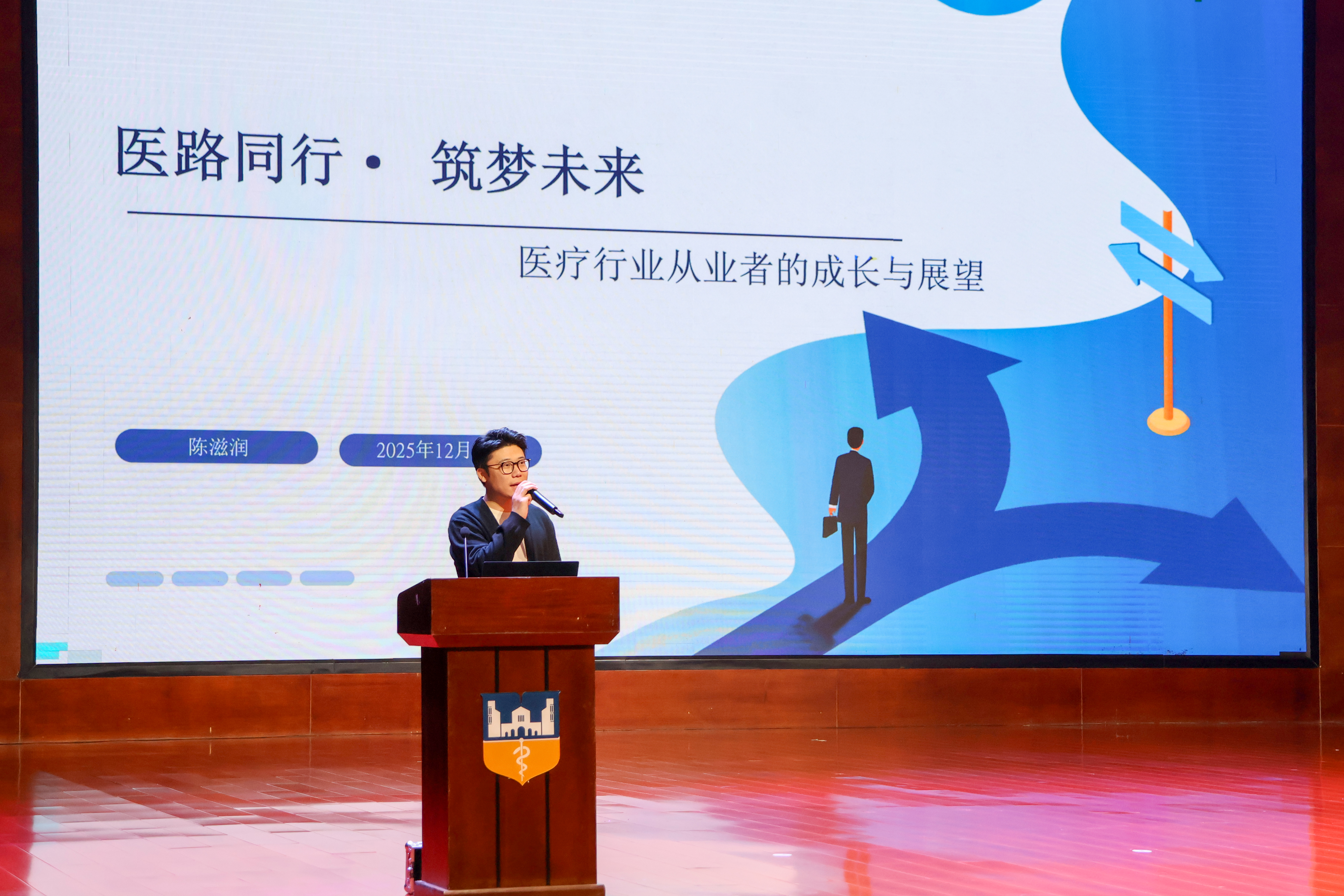为帮助学子明晰职业发展方向,搭建校友与母校的交流桥梁,12月11日,精诚书院“职业规划主题月”系列活动在闻德礼堂正式启幕。德馨书院党委书记卢明臣、精诚书院党委副书记高明出席活动,全校各专业学生积极参加。本次活动特别邀请冯宇、陈滋润、王晗、孙梦洋、赵志攀五位深耕医疗健康领域的优秀校友返校,开展主题讲座,为我校学子带来一场兼具专业性与实用性的职业规划盛宴。