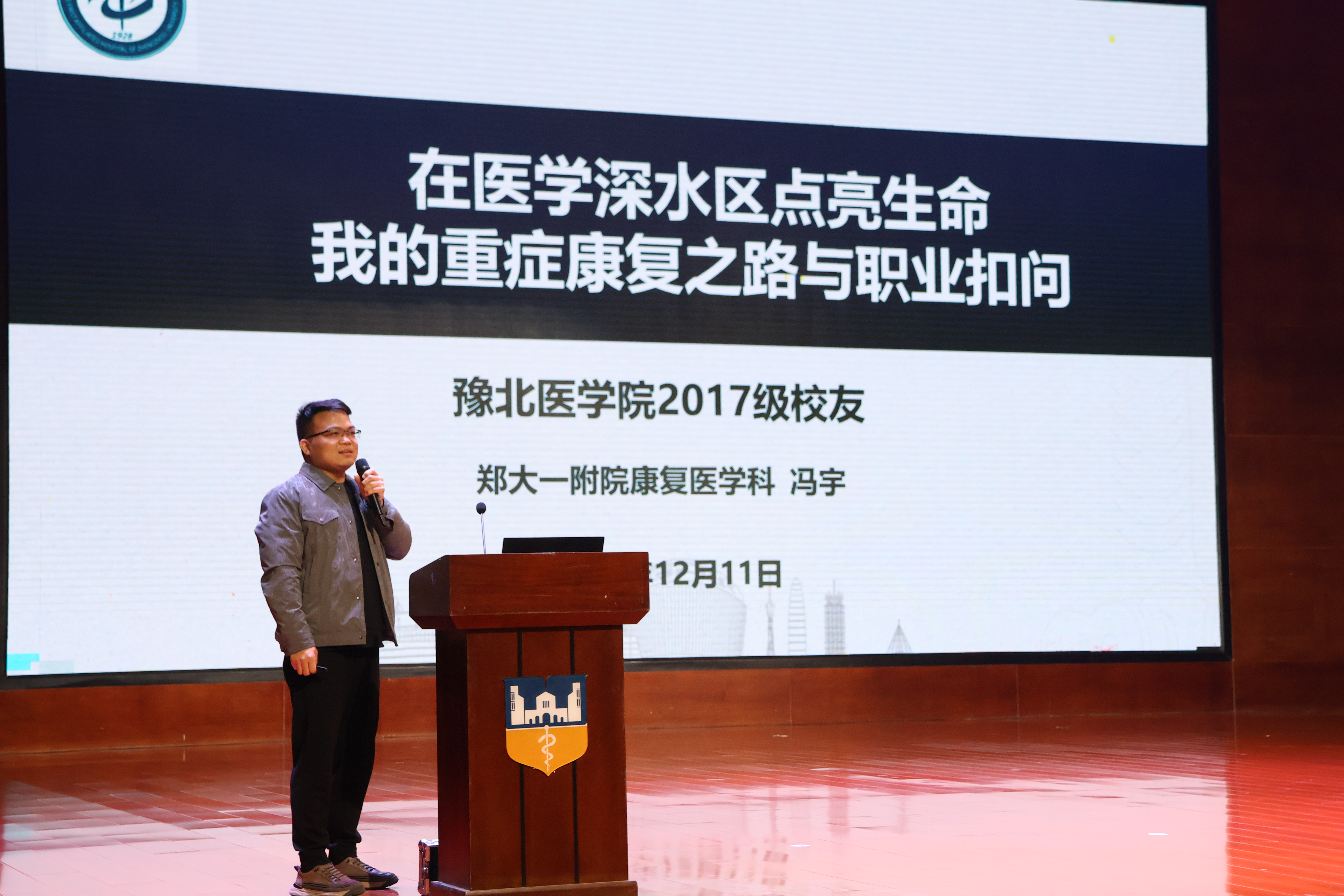 作为重症康复领域的“生命守护者”,我校2017届毕业生、现任郑州大学第一附属医院康复医学科康复前移组组长的冯宇,深耕重症康复这一医学“深水区”,用专业技术助力重症患者重启生命齿轮。讲座中,他结合自身从学生骨干到医学专家的成长轨迹,深入分享了重症康复领域的职业机遇与实践感悟,让学子们对医学专业的职业发展前景有了更清晰的认知。