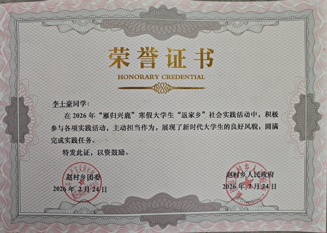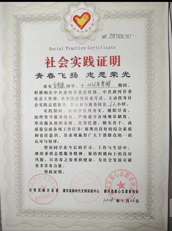 2023级康复治疗学专业的李士豪,积极响应鹿邑县“雁归兴鹿”号召,回到赵村乡开启了为期一个多月的“返家乡”社会实践。此次实践,李士豪以乡村振兴与社区治理为核心,全方位投身家乡建设。新春佳节,他忙碌在文化惠民活动现场,精心布置场地,引导乡亲们参与活动,让年味在乡村愈发浓厚。为助力家乡数字化治理,他走街串巷推广“豫企码”,耐心讲解使用方法,用实际行动推动数字技术融入乡村日常。