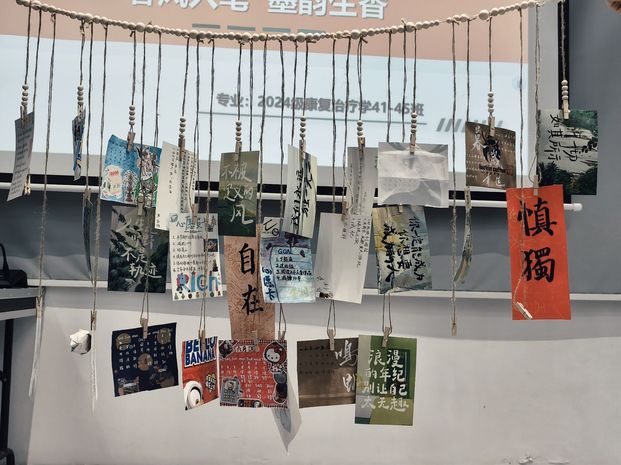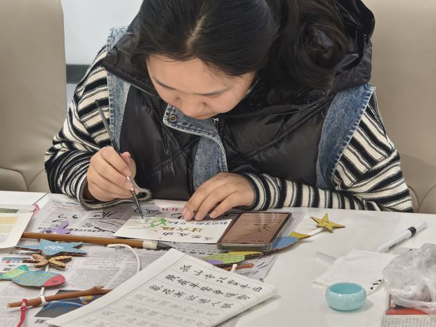 “书写新学期心愿清单”环节中,书法班成员用毛笔写下个人成长心愿与学习目标,部分成员写下“期末不挂科”“减肥成功”“通过四六级”等内容,还以彩笔勾勒具有文化意义的元素。随后,成员们将心愿清单贴在“春日心愿墙”上,展现当代大学生的青春风采。