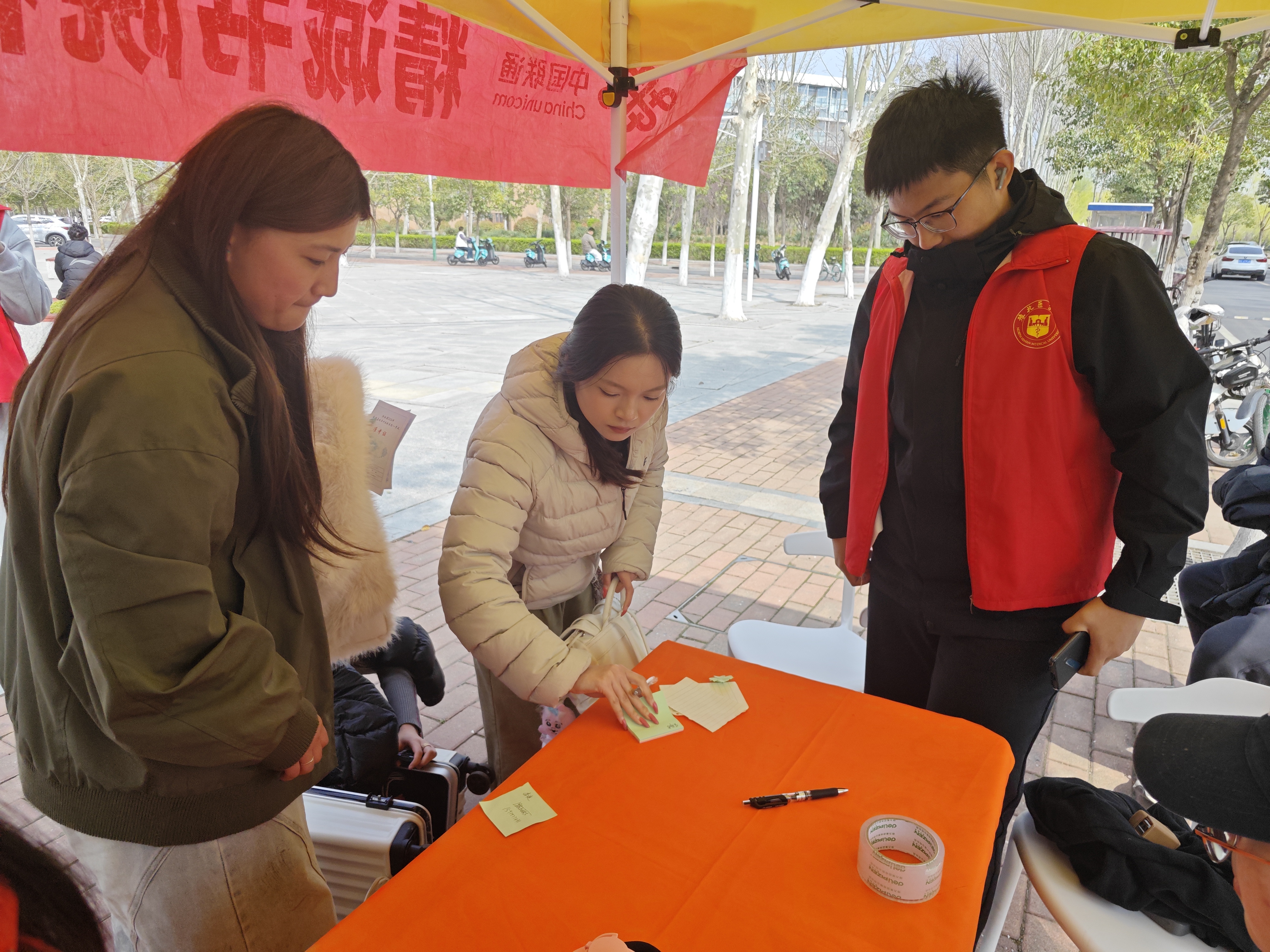 3月21日专升本考试期间,精诚书院在弘学楼前开展“爱心护航,助力升本”志愿服务活动,聚焦考生行李寄存核心需求提供贴心保障,以细致周到的服务营造安心、暖心、有序的应考环境,用实际行动践行志愿精神,为升本学子圆梦之路保驾护航。